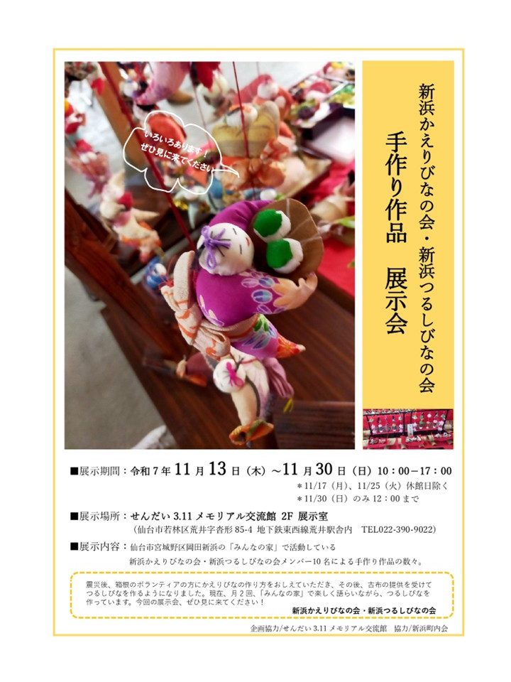 仙台市宮城野区岡田新浜の「みんなの家」で活動している新浜かえりびなの会・新浜つるしびなの会メンバー10名による手作り作品の数々をご紹介します。 震災後、箱根のボランティアの方にかえりびなの作り方をおしえてい […...