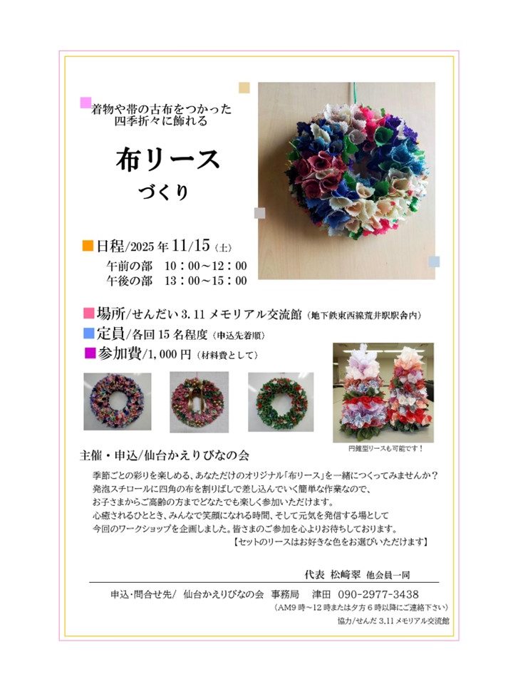 季節ごとの彩りを楽しめる、あなただけのオリジナル「布リース」を一緒につくってみませんか?