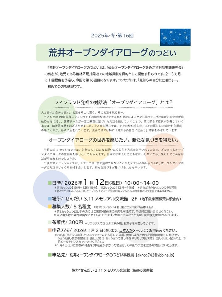 2026年・冬・第16回 荒井オープンダイアローグのつどい