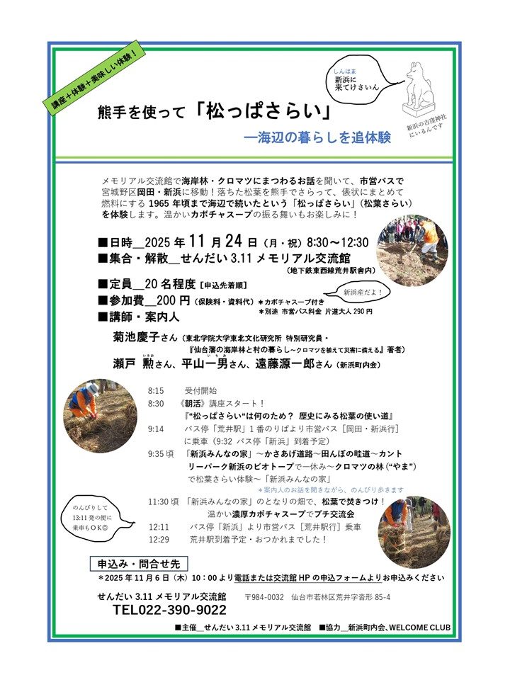 熊手を使って「松っぱさらい」―海辺の暮らしを追体験